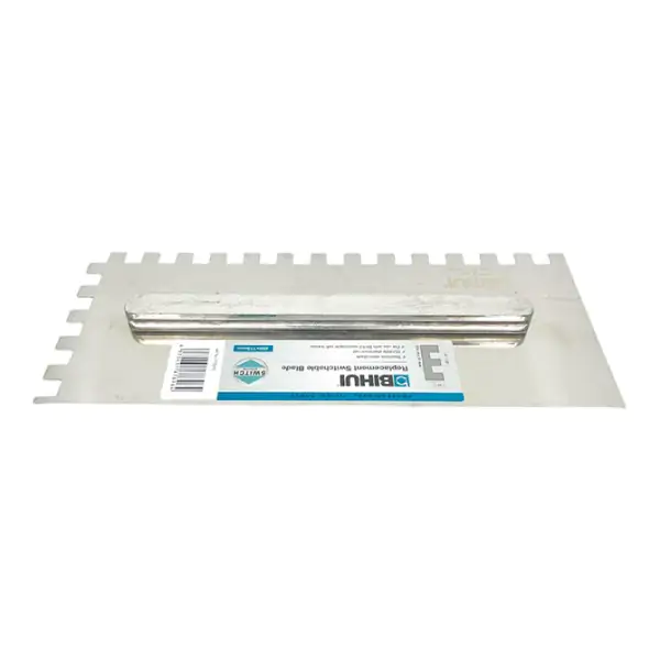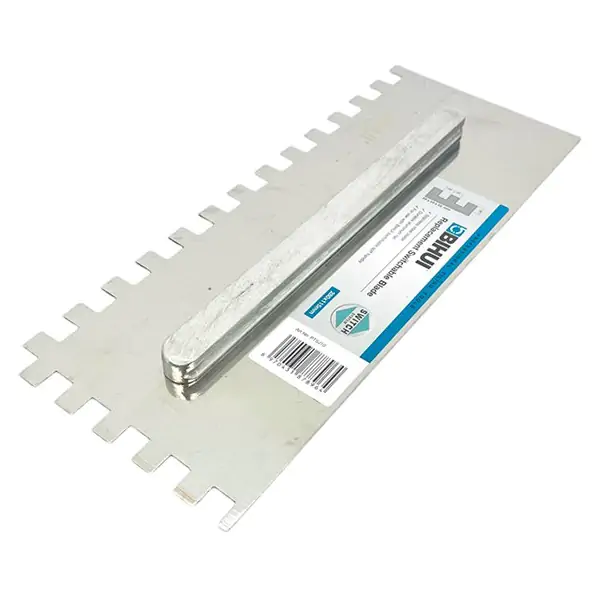 • Rezervno sečivo BIHUI PTSJ10 vrhunski je zamenjivi deo za nazubljene gleterice BIHUI PTSJG8, dizajnirano za profesionalce koji zahtevaju savršeno ravnomerno nanošenje lepkova i masa. Izrađeno od nerđajućeg čelika debljine 0,7 mm, ovo sečivo pruža izuzetnu čvrstinu, fleksibilnost i otpornost na koroziju, čime garantuje dugotrajan rad i konstantne performanse. Kvalitetni kvadratni zubi dimenzija 10×10 mm obezbeđuju preciznu kontrolu debljine sloja i ravnomernu distribuciju materijala bez zaostajanja. Široki aluminijumski učvršćivač omogućava čvrstu i stabilnu montažu na dršku, eliminišući pomeranje tokom rada. Dimenzija 280×115 mm čini ga idealnim za pokrivanje većih površina u kratkom vremenu. BIHUI PTSJ10 je neophodan dodatak za keramičare, podopolagače i sve građevinske majstore.