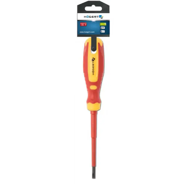 • Ovi izolovani ravni odvijači su sertifikovani za rad na živim električnim instalacijama sa naponom do 1000 V, pružajući sigurnost i preciznost pri radu. Sečeni su sa obe strane sa paralelnim konvergentnim profilom, što omogućava bolje prijanjanje u utoru i smanjuje rizik od klizanja. Tanka osovina omogućava jednostavan pristup vijcima i šrafovima koji su duboko postavljeni ili teško dostupni. Izrađeni su od visokokvalitetnog hrom-molibden legiranog čelika, što ih čini izdržljivim i otpornim na oštećenja i deformacije.