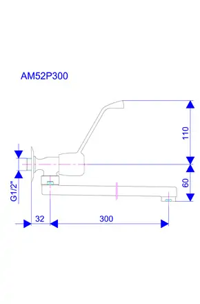 Jednoručna zidna slavina - ventil 1/2'' g.deo - donji izliv 300mm MEDICAL Rosan AM52P300