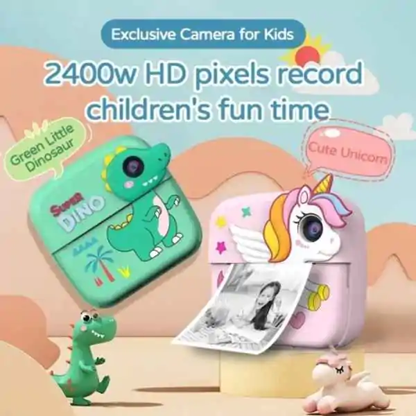 • Fotoaparat za decu sa štampačem Dinosaurus savršeno kombinuje zabavu, kreativnost i učenje kroz igru. Ovaj multifunkcionalni uređaj pruža mališanima priliku da stvaraju i čuvaju uspomene na potpuno jedinstven način – uz mogućnost momentalnog štampanja fotografija na termalnom papiru, bez potrebe za mastilom ili tonerima.