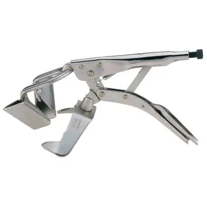 Klešta grip zavarivačka 432 D 280mm UNIOR,čeljusti kovane, od specijalnog alatnog čelika,ručke izrađene od čeličnog lima,površina niklovana,vreteno fosfatirano,nezamenljive pri spajanju profila pod uglom od 90º,mogućnost pritezanja predmeta različite debljine do max. 40 mm