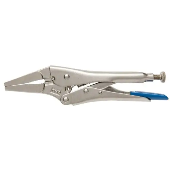 • Ova klešta sa dugim, pravim čeljustima su idealna za rad sa proizvodima ravnog oblika iz bilo kog ugla, posebno kod zavarivanja i preciznih mehaničkih radova. Čeljusti su kovane od visokokvalitetnog hrom-vanadijum legiranog čelika, ojačane i nazubljene, što omogućava pouzdan trotačkast kontakt sa predmetima i siguran hvat bez klizanja. Podesivi šraf omogućava variranje pritiska i približavanje materijala, dok izolovana ručka za zaključavanje garantuje sigurnost pri radu. Integrisani sekač žice dodatno povećava funkcionalnost alata, omogućavajući da obavite više zadataka jednim alatom. Ova klešta kombinuju snagu, preciznost i udobnost, čineći ih nezamenjivim dodatkom u radionici ili profesionalnom alatu.