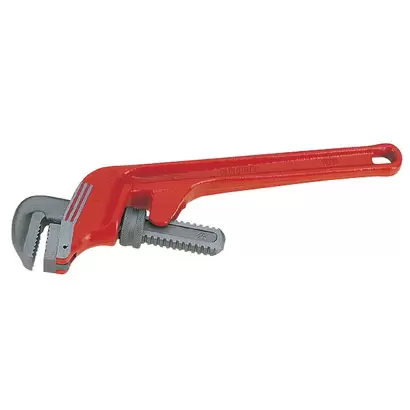 • Klešta za cevi podešavajuća, savijena 490 1" UNIOR, kućište izrađeno od specijalne legure, veoma postojano. čeljusti u celini poboljšane, zubi dodatno induktivno okaljeni. čeljusti zamenljive, fosfatirane. ručica lakirana. rezervne čeljusti i matice za art. 490/6, 492/9 i 492 AL. podešavajuća gornja čeljust
