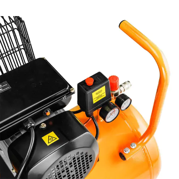 • Praktične karakteristike: regulator pritiska, ugrađeni manometri, velika ručka za transport, masivna metalna konstrukcija