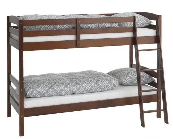 • Kvalitetan krevet na sprat od masivne smrekovine u braon boji.