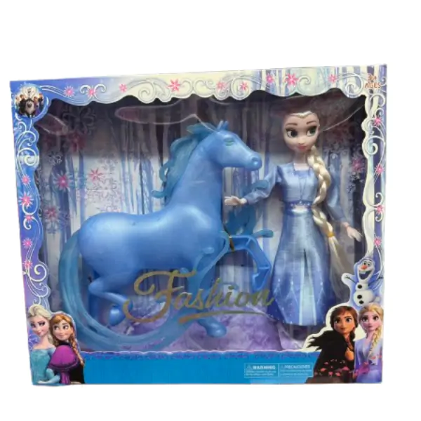 • Set sadrži lutku Elzu i njenog magičnog konja Nokk, donoseći deo čarolije filma Frozen 2 pravo u dečju sobu. Elza je visine 30 centimetara, obučena u svoju prepoznatljivu belo-plavu haljinu sa svetlucavim detaljima koja podseća na led i sneg, sa plavom kosom upletenom u prepoznatljivu pletenicu. Nokk je detaljno izrađen po uzoru na lik iz Frozen priče – vodeni konj, providne ili plave boje, sa tečnim, talasastim oblikom, sa dugom grivom i repom koji podsećaju na vodopad. Nokk ima pokretne noge i glavu, i može da stoji samostalno. Elza može da sedne na Nokk (ako ima raširene noge) i da ga jaše kroz čarobnu šumu, preko mora, ili u susret sestri Ani. Lutka ima pokretne ruke i noge, i može da drži uzde (ako su uključene) ili da maše rukama dok galopira. Set podstiče maštovitu igru i kreativnost – deca mogu da rekreiraju scene prelaska mora, bekstva od talasa, ili osmišljavaju sopstvene avanture u kojima Elza i Nokk istražuju nove svetove. Odlično za sve male ljubitelje Frozen sveta, konja, magije i sestrinske ljubavi. Preporučuje se za decu od 3 godine naviše.