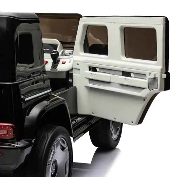• Licencirani Mercedes EQG 4X4 Crni dečiji električni automobil donosi vrhunsko iskustvo vožnje, osmišljen sa svim detaljima koji pružaju autentičnost i radost malim vozačima. Opremljen premium paketom opreme, uključuje meko kožno sedište, EVA gume najvišeg kvaliteta, prednja i zadnja svetla, vrata sa sigurnosnom bravom i sigurnosni pojas za maksimalnu bezbednost. Sa četiri snažna motora od 35W (ukupno 140W) i kvalitetnim akumulatorom od 12V 9A, garantuje dugotrajnu zabavu i odlične performanse. Roditelji mogu preuzeti kontrolu putem 2.4G daljinskog upravljača, dok mališani mogu uživati u samostalnoj vožnji uz pomoć papučice za gas. Instrument tabla opremljena je AUX, USB ulazom i Bluetooth funkcijom za slušanje muzike. Brzina vozila je prilagođena deci (3–5 km/h), a preporučena nosivost iznosi 30 kg. Dimenzija 121 x 74 x 62 cm, izrađen od najkvalitetnijih materijala u skladu sa EU standardima (AS, CE, EN71-1/-2/-3, EMC), ovaj model pruža sigurnu i autentičnu zabavu.