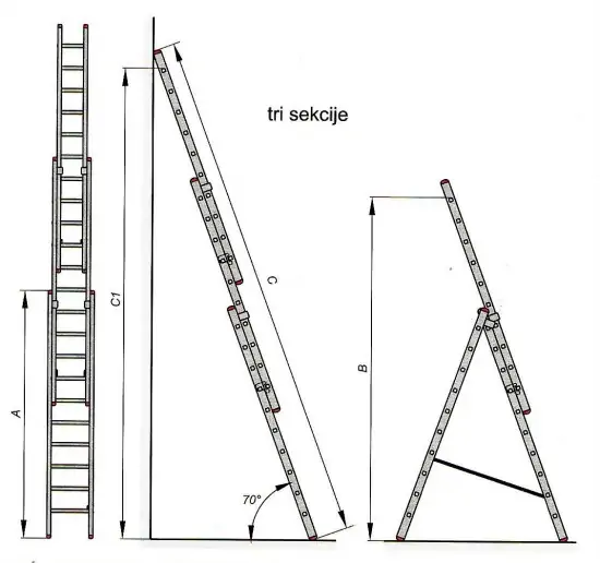 • Merdevine aluminijumske kombinovane na izvlačenje 3x7