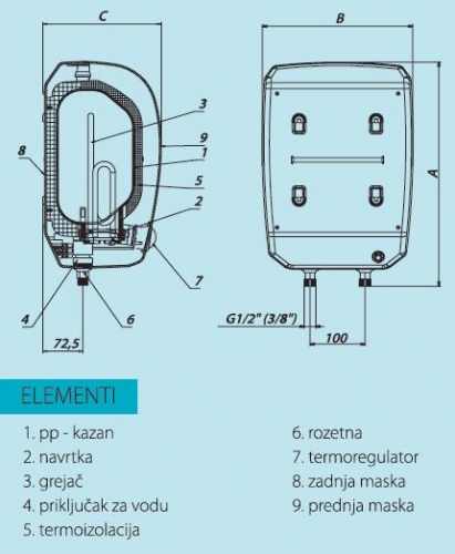 • To je akumulacioni otvoreni grejač vode prelivnog tipa, odnosno predviđen za rad, u kombinaciji sa niskopritisnom baterijom za mešanje vode. Kazan je kvalitetno izolovan toplotnom izolacijom i na taj način je omogućena ekonomična upotreba tople vode.