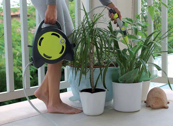 • Zahvaljujući svom dizajnu možete zalivati sa razvučenim crevom ili u koturu