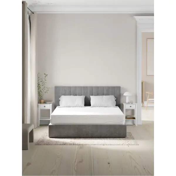 • Naddušek dimenzija 140 x 200 cm, visine 6 cm, sa jezgrom od gel memorijske pene (gelpena) pruža vrhunsku udobnost i regulaciju temperature tokom spavanja – pena se prilagođava telu i odvodi višak toplote, obezbeđujući svež i prijatan san. Jezgro od 60 mm gelpene gustine 40 kg/m³ garantuje optimalnu potporu i elastičnost. Navlaka je od pletene tkanine, 100% poliester (od čega 54% reciklirani), bele boje, sa neklizajućom osnovom i elastičnim trakama na uglovima za lakše pričvršćivanje. Periva je na 60°C. Isporučuje se u rolo pakovanju (26 x 86 cm), težine 8,77 kg, i nosi OEKO-TEX® STANDARD 100 sertifikat. GOLD kvalitet garantuje dugotrajnost i visoke performanse.
