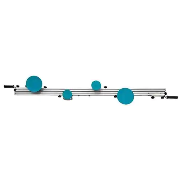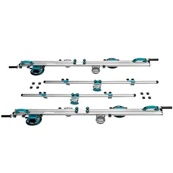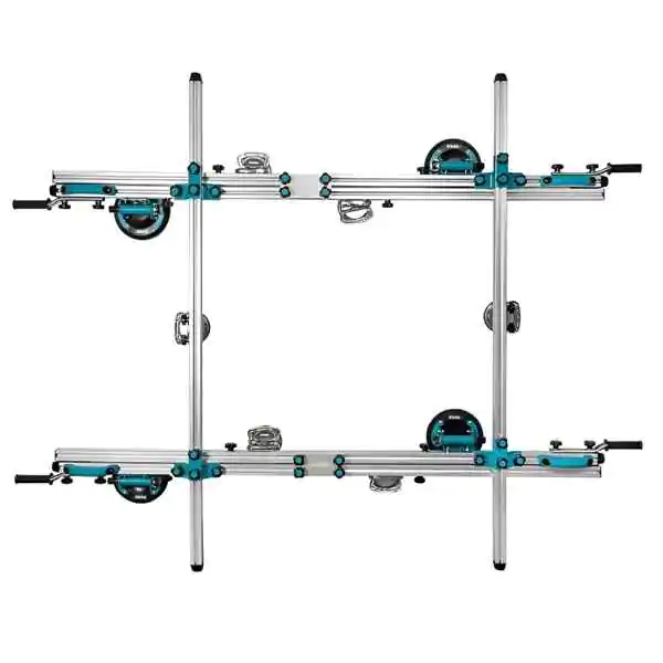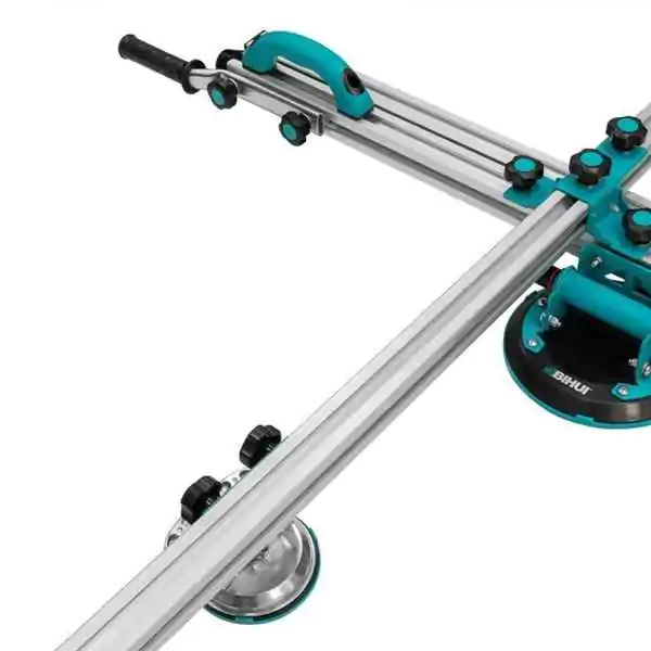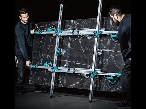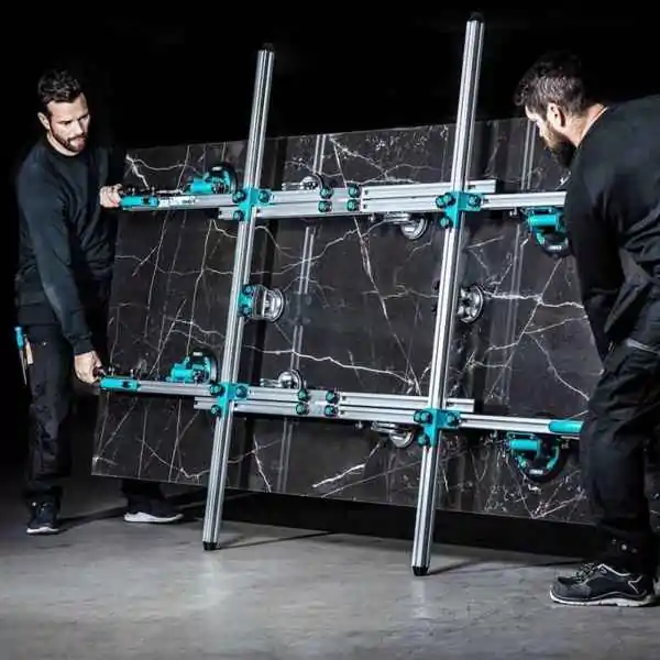 • Posebna prednost ovog modela je 2 u 1 funkcija – vakuumske čaše sa pumpom mogu se skinuti i koristiti samostalno kao ručne vakuumke za postavljanje pločica, što dodatno povećava praktičnost i isplativost alata. Sistem poseduje četiri ergonomske ručke, koje klize duž profila i imaju mehanizam za brzo otpuštanje i zaključavanje. Time je omogućeno ergonomično nošenje, ali i lakše postavljanje pločica na zid ili pod.