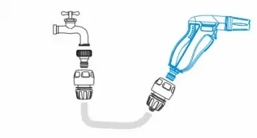 Set mlaznice sa adapterima. Sadrži pet elemenata: Pištolj za prskanje3/4" muški (quick connect) brza spojka,konektorAdap ...