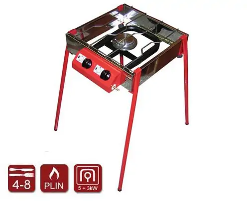 Stoni plinski roštilj inox 40 x 40 sa kuvalom, gusana glatka ploča CAMPING 40K gusana glatka pločaPečenje ili kuvanje na plinskim roštil ...