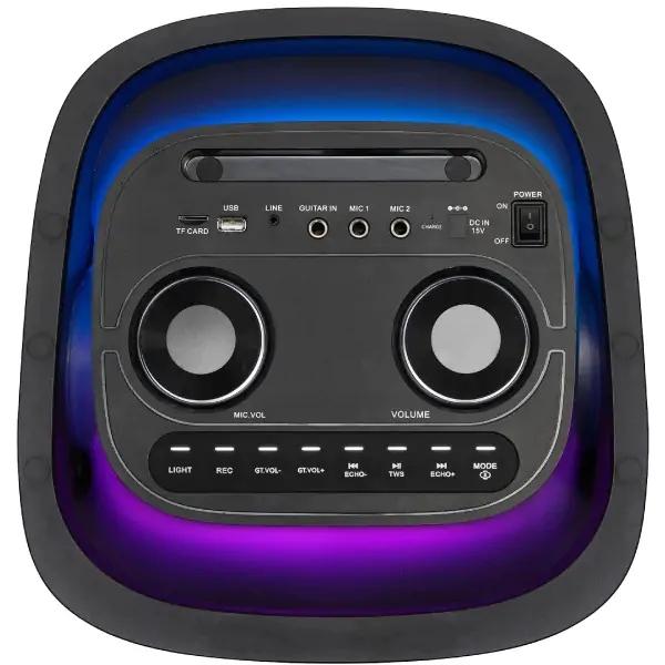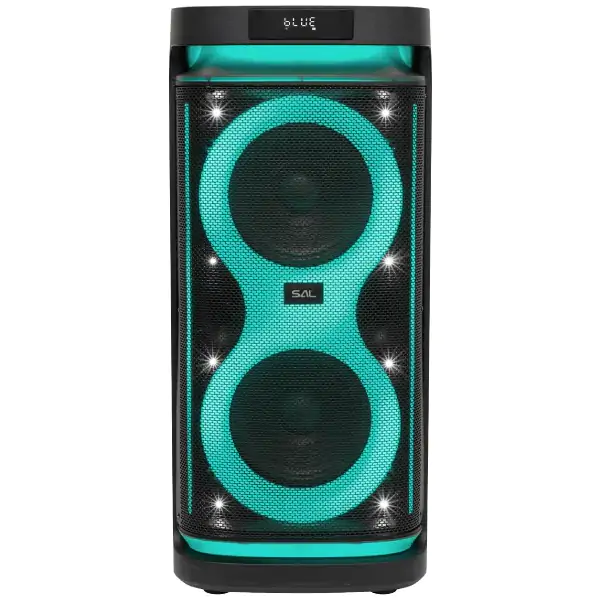• SAL PAR2400BT zvučnik za zabavu donosi impresivnih 120 W snage i dvostruke sabvuftere koji garantuju snažan bas i kristalno čiste visoke tonove, stvarajući pravu atmosferu na svakom okupljanju. Zahvaljujući ugrađenoj bateriji, zabava nije ograničena na jednu lokaciju – ovaj prenosivi zvučnik možete poneti bilo gde, bilo da je u pitanju kućna žurka, okupljanje u bašti ili manji događaji. Bežična Bluetooth veza omogućava jednostavno puštanje muzike sa pametnog telefona, tableta ili laptopa, dok TWS (True Wireless Stereo) funkcija omogućava uparivanje dva identična zvučnika za još snažniji i impresivniji surround zvuk. Spektakularna LED svetla dodatno upotpunjuju vizuelni doživljaj i obezbeđuju pravu atmosferu zabave. Dvosmerni zvučni sistem sa bas refleks dizajnom daje dubok, pun bas i jasan, detaljan zvuk. Pored Bluetooth reprodukcije, uređaj poseduje USB/microSD plejer za direktno puštanje MP3 datoteka, 3,5 mm LINE ulaz za povezivanje drugih audio uređaja, kao i ulaze za gitaru i dva mikrofona sa eho funkcijom – idealno za muzičare i organizaciju karaoke večeri. Beli digitalni displej omogućava lak pregled podešavanja, a automatsko punjenje sa LED indikatorom pruža uvid u status baterije.
