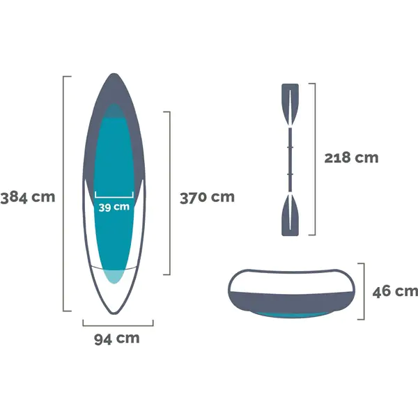 • Dimenzija kajaka 384 x 94 x 46 cm