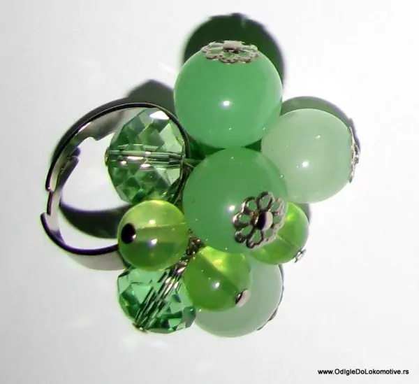 Prsten mutnozelen sa perlama i staklićima ručna izrada 97761