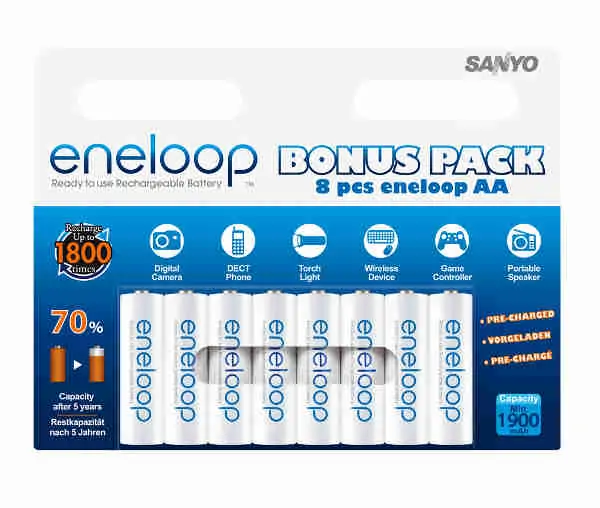 • Nova generacija Sanio Eneloop HR - 3UTGB AA baterija može da se puni i do 1800 puta