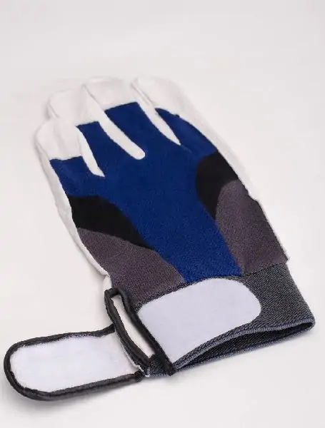Zaštitne rukavice kožne Hora 10Kožna rukavica od glatke kozje kože u beloj-plavoj bojiMaterijal: kozja koža s pamučnom nadlanicomManžetna: elastična s ...