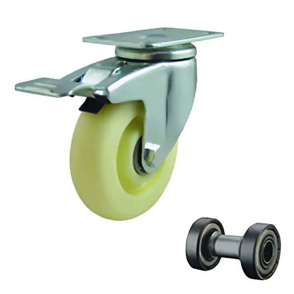 • Opunjen duplim kugličnim ležajem (lagerom), omogućava glatko i lako okretanje čak i pod opterećenjem, dok integrisana kočnica pruža dodatnu sigurnost i stabilnost kada je oprema u mirovanju. Zahvaljujući ojačanoj konstrukciji, točak održava oblik i funkcionalnost tokom dužeg korišćenja, čak i na neravnim površinama.
