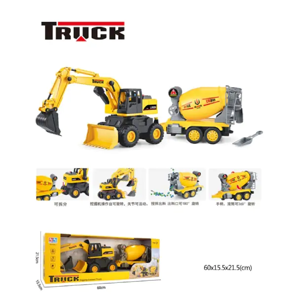 • Rovokopač/Bager sa Betonjerkom je veliko i impresivno građevinsko vozilo koje malim ljubiteljima gradilišta donosi realističnu igru uz zvučne efekte i robustnu konstrukciju prilagođenu za igru u kući i na otvorenom. Dimenzija 60 × 15.5 × 21.5 cm, ovaj set kombinuje funkcionalnost rovokopača i betonjerke, omogućavajući deci da izvode raznovrsne građevinske zadatke – od kopanja do mešanja betona. Zvučni efekti dodatno oživljavaju igru i podstiču maštu, dok izdržljiva konstrukcija garantuje dugotrajnu upotrebu. Namenjen je uzrastu od 3+ godine i idealan za razvoj motorike, kreativnosti i razumevanja rada građevinskih mašina.