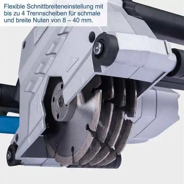 • Scheppach MNF2250 glodalica za zidove predstavlja profesionalno rešenje za brzo, precizno i efikasno frezovanje kanala u betonu, cigli, malteru i gipsu, što je čini idealnim alatom za električare, vodoinstalatere i sve majstore koji izvode instalacione radove. Zahvaljujući snažnom motoru od 2250 W i mogućnosti ugradnje do četiri paralelne dijamantske ploče Ø125 mm, ova mašina omogućava izuzetno čiste i ravne rezove uz minimalan napor.