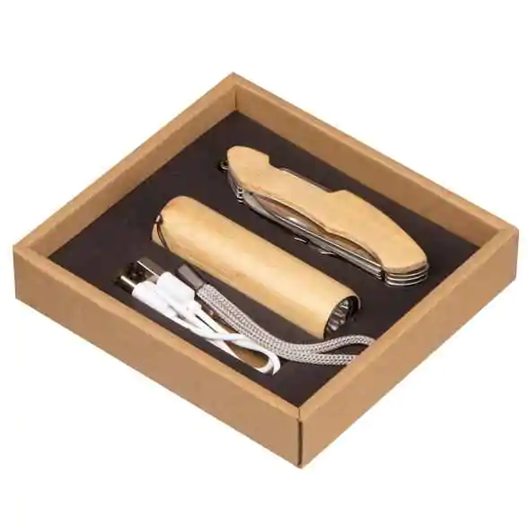 • FREDI SET (5552) – set baterijska lampa i džepni nož od bambusa predstavlja savršenu kombinaciju funkcionalnosti, praktičnosti i prirodnog dizajna. Ovaj moderan i kompaktan set sa baterijskom lampom i džepnim nožem idealan je za svakodnevnu upotrebu, boravak u prirodi, kampovanje ili kao koristan dodatak za kuću, automobil i radionicu.