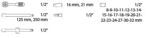 Ključ nasadni prihvat 1/2" 190/1 6p 5/16" Uniormaterijal: premium flex hrom-molibden čelikkovan, u potpunosti poboljšan i ojačanhromi ...