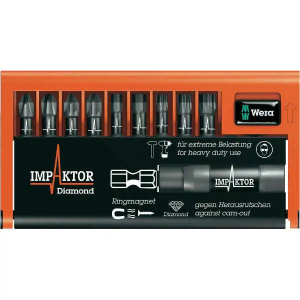 Komplet od 10 impact bitova 50mm 66IM/10C-1 BahcoZa Phillips, Pozidriv i TORKS® zavrtnje sa glavomUključuje 10 komada bitova25 mm: PH2 x2, PH3, PZ ...