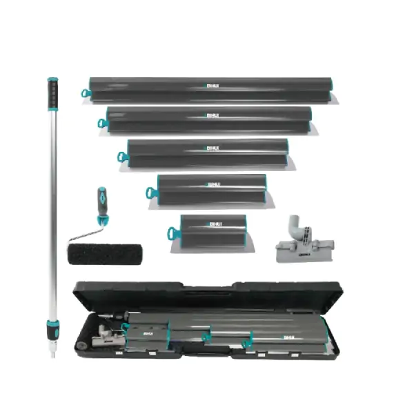 • Set BIHUI za gipsane radove predstavlja sveobuhvatno i ergonomski dizajnirano rešenje za brzu, preciznu i kvalitetnu obradu gipsa. Teleskopska drška dužine 110 cm, sa udobnom PVC omčom, omogućava rad sa različitim visinama i uglom, dok se pet fleksibilnih noževa od nerđajućeg čelika (dužine 25, 40, 60, 80 i 100 cm) sa tankim sečivima od 0,3 mm lako prilagođavaju površini, obezbeđujući glatku završnu obradu bez potrebe za naknadnim brušenjem. Set uključuje i najlonski valjak od 22 cm za farbanje, kao i konektor koji omogućava montažu valjka ili noževa na istu dršku, čineći ga izuzetno svestranim i praktičnim. Svi delovi su organizovani u robustnoj transportnoj kutiji, čime se olakšava skladištenje i zaštita alata. Sa težinom od 8,8 kg, ovaj komplet nudi optimalan odnos između kompletnosti, portabilnosti i profesionalne izrade, idealan za majstore, renovatore i sve koji traže pouzdan alat za savršene rezultate u gipsanim radovima.