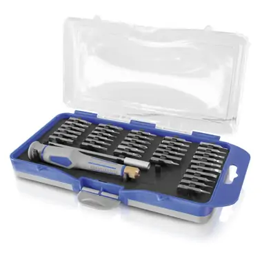 Set preciznih odvijača-bitova 37 kom. ERBA.Sastoji se od: T tip 4,5,6,7,8,9,10,15,15,20,20.Ravni 1.0, 1.5, 2.0, 2.5, 3.0, 3.5, 4.0.Phillips: PH000, PH00, PH0, PH1, PH1. Torx: 0,1,1.H tip 0.7, 0.9, 1.3, 1.5, 2.0, 2.5, 3.0, 4.0. Nastavak 118mm i ručica.