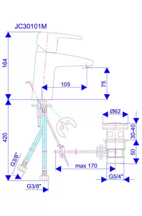 Jednoručna slavina - baterija za lavabo - sa metalnim odlivnim ventilom King J301001M ROSANJednoručna baterijaMontiranje na jedan otvorKlasa protoka Z ...