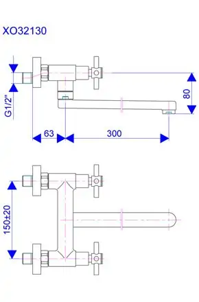 Slavina-Baterija za sudoperu - lavabo donji izliv 300mm XO ROSAN