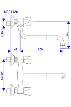 • Naziv proizvoda: Slavina-Baterija zidna donji izliv 300mm Euro Klasik ROSAN