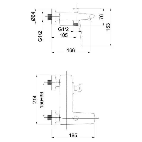 Mistique - Uzidna baterija za tuš kadu sa 2 izlaza ROSANJednoručna baterija Montaža u zidu2 izlazni priključakKeramički mešač KEROX ...