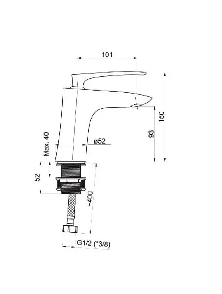Diplon baterija za sudoperu / lavabo ST0315Jednoručna zidna slavinaHorizontalna instalacija na dva otvoraKeramički mešač Ø40 ...