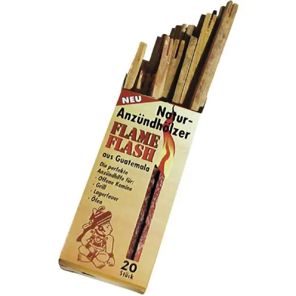 • Prirodni štapići za potpaljivanje poznati kao plamenski bljesak potiču iz šuma oblasti Baja Verapaz i izrađeni su od smreke bogate prirodnom smolom (70–80%). Zahvaljujući visokom sadržaju smole, ovi štapići se lako pale i stvaraju stabilan plamen koji traje dovoljno dugo da zapali drva, brikete ili ćumur.