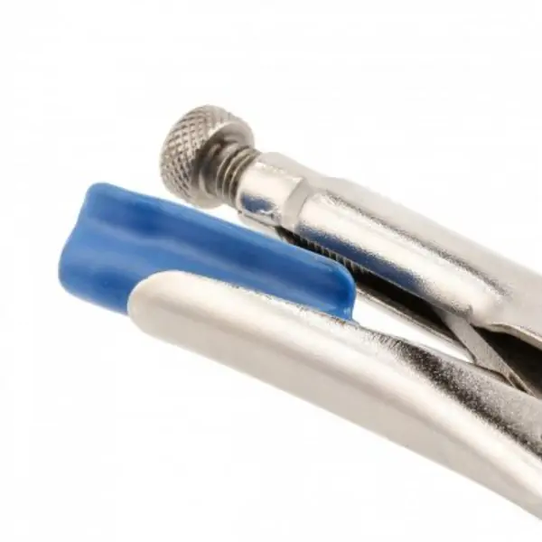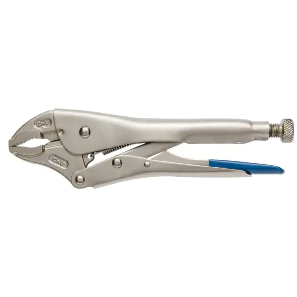 • Stezna klešta sa okruglim čeljustima namenjena su radu sa predmetima različitih oblika, kao što su okrugli, ovalni i drugi profili. Koriste se u bravarskim, mehaničarskim i servisnim poslovima, gde je potrebno sigurno i snažno stezanje. Čeljusti su kovane od hrom-vanadijumskog čelika, kaljene i nazubljene, što obezbeđuje dobar prihvat i sprečava klizanje tokom rada. Konstrukcija klešta omogućava kontakt u tri tačke, čime se postiže stabilnije držanje materijala. Zavrtanj za podešavanje omogućava precizno podešavanje sile stezanja u zavisnosti od potrebe. Drške su izolovane i imaju mehanizam za zaključavanje, što omogućava siguran i udoban rad. U klešta je ugrađen i rezač žice, koji dodatno povećava praktičnost i olakšava svakodnevnu upotrebu alata.