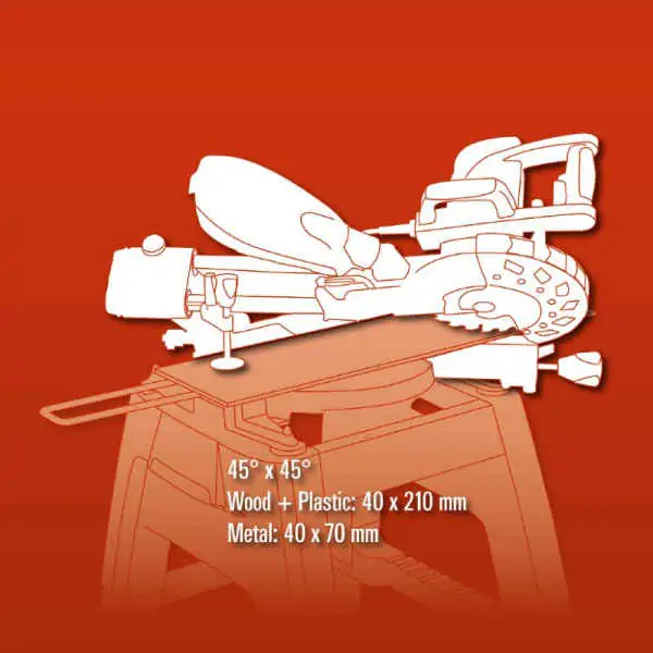 • Širina sečenja 45 ° x 45 ° 210 x 40 mm