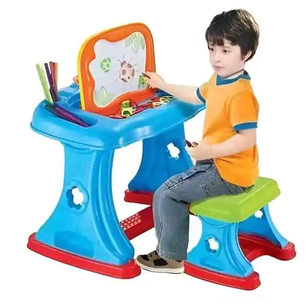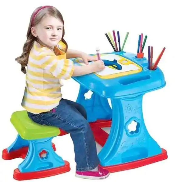 • Sto i radni sto sa tablom za crtanje i pisanje namenjen je deci uzrasta od dve godine i starijima. U pitanju je edukativna igračka koja kombinuje funkcionalnost dečijeg stola i projektor za učenje i crtanje, čineći svaku aktivnost zanimljivom i interaktivnom. Dete može crtati, bojiti ili vežbati slova i brojeve, dok projektor projektuje slike koje pomažu u učenju i praćenju kontura.