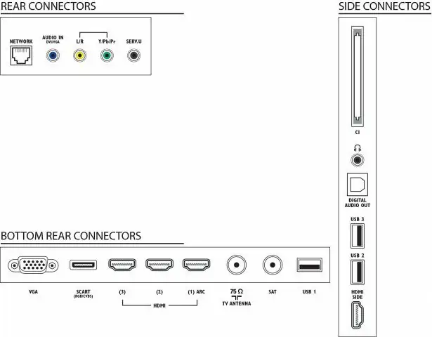 • Interface Plus (CI+), Digitalni audio izlaz (koaksijalni), PC ulaz (VGA), Audio ulaz, Izlaz za slušalice, Konektor za servisiranje, Ethernet-LAN RJ-45