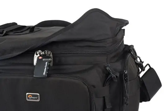 • Dodatne funkcije uključuju: komad pene za kadriranje, zatvarač poklopca; LowePro-ov patentirani All Weather AW Cover™, metalni D-prstenovi, brzo oslobađanje kopča na prednjoj strani torbe, brz pristup organizacionom džepu, 2 džepa sa strane, 3 SlipLock ™ priloga;, 2 obložene ručice; ugrađenu mikrofiber tkaninu za LCD ekran.