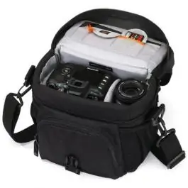 Torbica za kameru Nova 160 AW crvena LOWEPRO.Nova Lowepro torba 160 AW uključuje 360° \"All Weather Cover™\" koji štiti vašu opremu dok radite. Ona je dovoljno velika za nošenje fotoaparata, objektiva, memorijskih kartica i dodatne opreme. \"All-around\" dodaci uključuju: \"overflap\" poklopac koji povećava zaštitu od spoljnih uticaja; džepove za memorijske kartice na unutrašnjoj strani poklopca; prednji džep za pribor; mrežaste džepove (sa strane); podstavljeni remen i udobnu i trajnu ručicu za nošenje; prsten za \"rolling luggage\". Pogodna \"CollarCut™\" naramenica daje Vam dodatnu udobnost. Praktičan izbor za profesionalce.