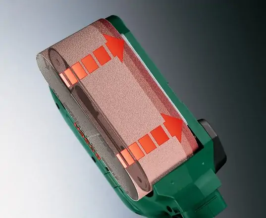 Trakasta brusilica BBSE 1100 AEGMoćan 1100 W motorEkstra velika brusna površina 100 x 140 mmElektronikaza izbor brzine trakeKontrola preciznog prilag ...