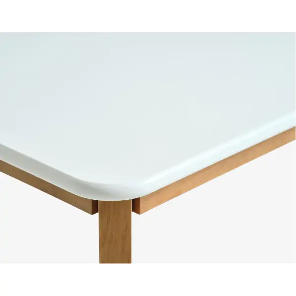 • Trpezarijski sto pravougaonog oblika, dimenzija 80 x 130 x 75 cm, izrađen je od kombinacije medijapana i masivnog drveta kaučuka, u beloj i natur boji. Gornji deo stola je od medijapana sa masivnim drvetom kaučuka, dok su noge od masivnog drveta kaučuka, lakirane radi zaštite i dugotrajnosti. Rastojanje između nogu je 117,5 cm i 67,5 cm, a visina ispod stola iznosi 66,7 cm, pružajući dovoljno prostora za udobno sedenje. Maksimalno opterećenje stola je 40 kg. Isporučuje se u jednom paketu, težine 21 kg, i potrebno ga je montirati.