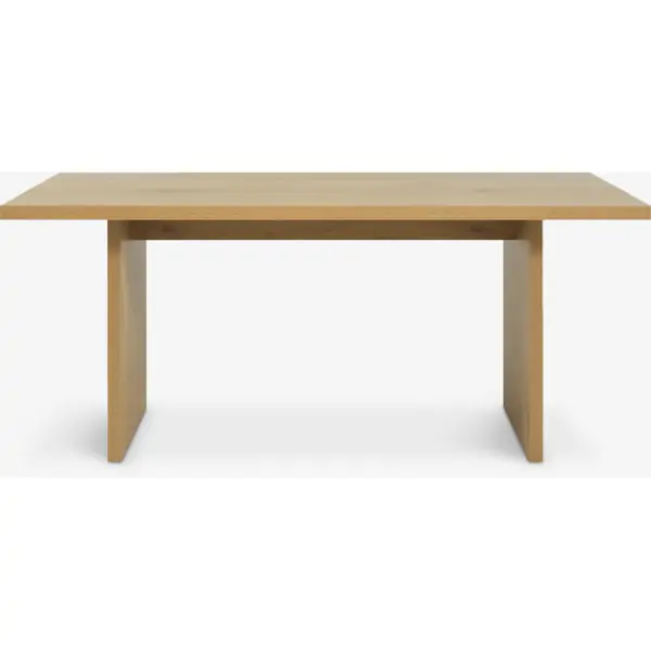 • Trpezarijski sto pravougaonog oblika, dimenzija 90 x 180 x 75 cm, u toploj hrast boji, izrađen je od kombinacije medijapana i melamina sa čeličnim elementima, pružajući stabilnost i moderan izgled. Gornji deo i noge su od medijapana i melamina, ojačani čelikom za dodatnu čvrstoću. Rastojanje između nogu je 117 cm, a visina ispod stola iznosi 71 cm, omogućavajući udobno smeštanje stolica. Maksimalno opterećenje stola je 40 kg. Isporučuje se u dva paketa, ukupne težine 49 kg, i potrebno ga je montirati.