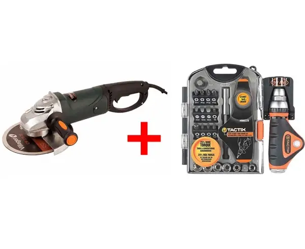 • Uz brusilicu se isporučuje set ručnog alata u kutiji, koji sadrži 25 kom raznih nastavaka, nasadnih ključeva i dr,