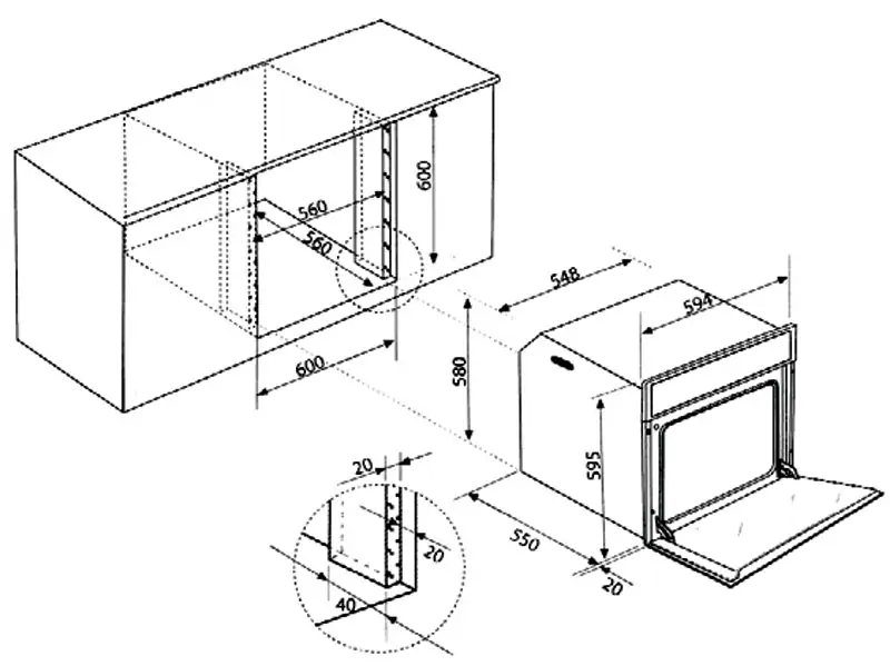 Dimenzije za ugradnju (ŠxVXD): 60 x 60 x 56 cm