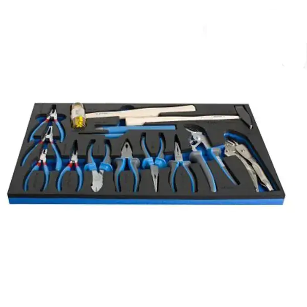 • Unior set od 14 profesionalnih alata, smešten u praktični SOS uložak (964/51SOS), predstavlja kompaktan i specijalizovan komplet namenjen za rad sa seger prstenovima, stezanje, sečenje i obeležavanje u mašinskim radionicama, autoservisima i industrijskom održavanju. Težine svega 4,9 kg, ovaj set obuhvata kombinovana klešta (607871) dužine 180 mm, grip klešta (601552) od 250 mm, papagaj klešta (620557) od 240 mm, kose sečice (608850) od 180 mm, špicasta prava klešta (607877) i špicasta savijena klešta (607967) dužine 200 mm. Za precizan rad sa prstenovima tu su spoljna prava i savijena seger klešta (621189, 621197) i unutrašnja prava i savijena seger klešta (621205, 621213), sve dužine 180 mm. Set uključuje i obeleživač od 5 mm (601726), pljosnati sekač od 200 mm (601733), bravarski čekić težine 400 g (601803) i plastični čekić prečnika 40 mm (601835). Sa 14 alata, ovaj set je idealan za profesionalce koji zahtevaju specijalizovane alate za demontažu i montažu prstenova, stezanje i precizne radove, sve u kompaktnom SOS ulošku za preglednu organizaciju.
