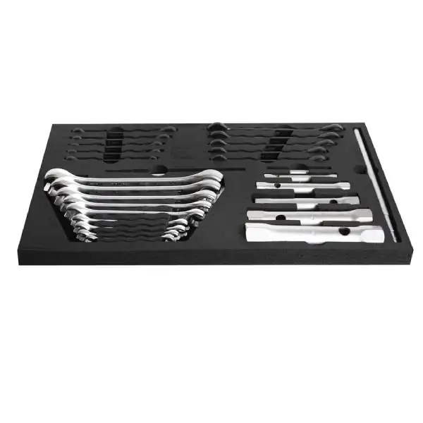 • Predstavljamo vam garnituru UNIOR alata od 28 komada, sveobuhvatan komplet namenjen profesionalcima i ljubiteljima kvalitetnog alata. Ovaj set uključuje šest cevastih ključeva dimenzija od 6×7 do 30×32 mm sa pripadajućim trnovima dužine 230 i 330 mm, deset viljuškasto-okastih ključeva sa čegrtaljkom dimenzija od 10 do 19 mm, deset otvorenih okastih ključeva dimenzija od 8×10 do 30×32 mm, kao i šest zglobnih dvostranih nasadnih ključeva. Komplet je osmiljen za najširu primenu u mašinskoj, građevinskoj, poljoprivrednoj i auto industriji. Ukupne težine 6,4 kilograma, garnitura dolazi u praktičnom SOS ulošku koji omogućava urednu organizaciju i lako prepoznavanje svakog alata. Izuzetan kvalitet UNIOR alata garantuje dugotrajnu izdržljivost i preciznost pri svakom zahvatu.